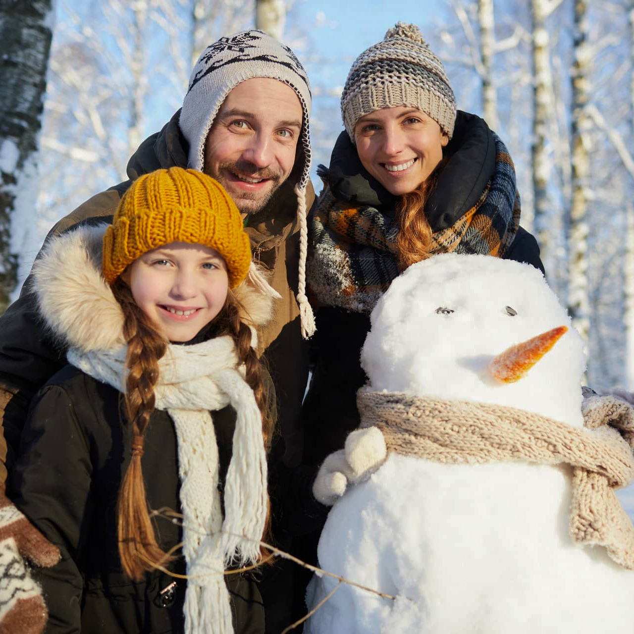 Берем оранжевый шарфик, нос-морковку, глазки-пуговки, шапку-ведро и на улицу. Лепить Снеговика! Всей семьей. Ах, как это весело!